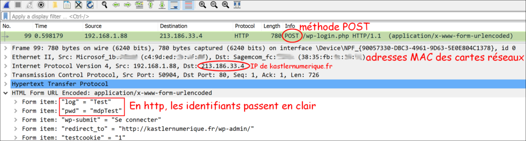 Pour voir si une transmission est chiffrée ou non, il faut un logiciel de capture de trames : Wireshark.