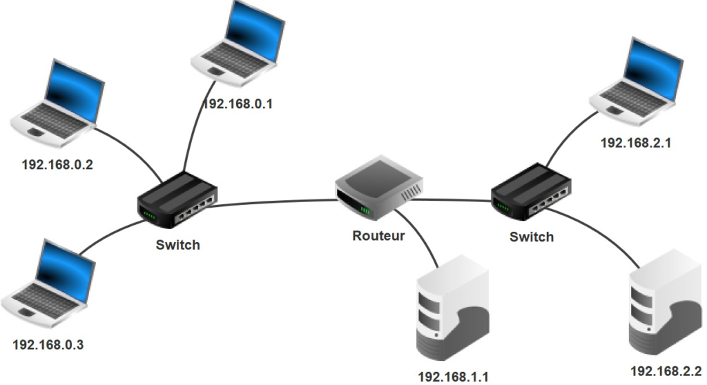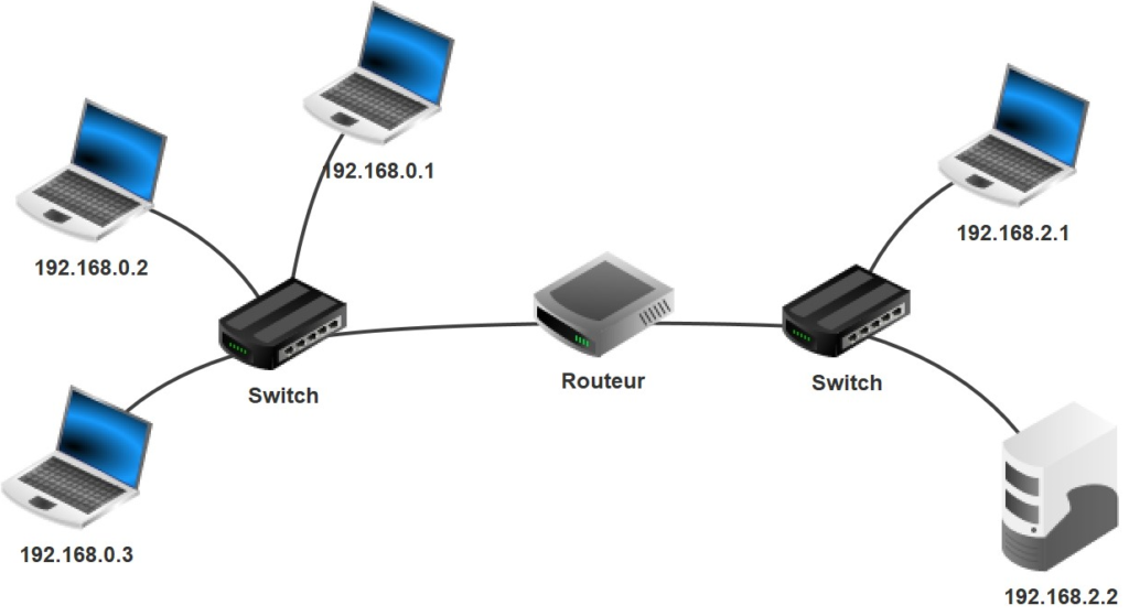 Bien noter que ce montage contient 2 réseaux : 192.168.0.0/24 et 192.168.2.0/24.