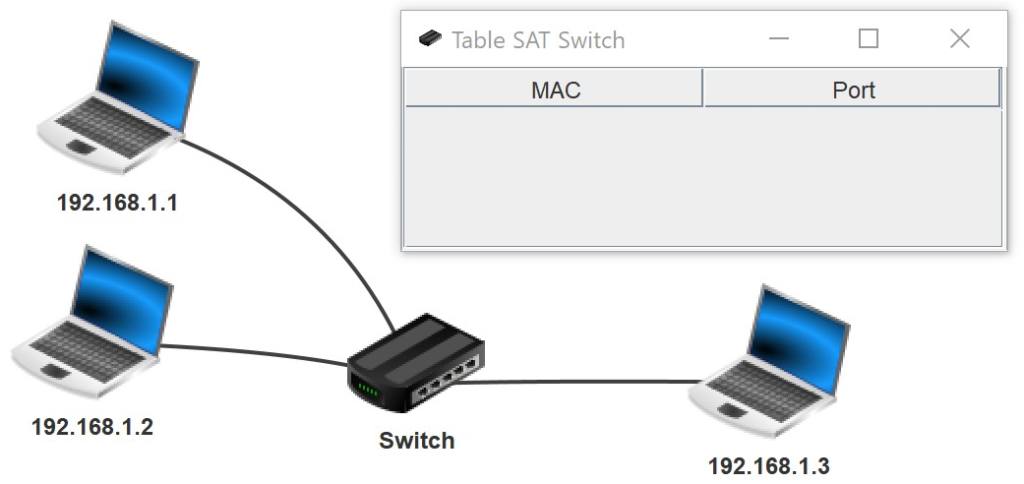 - Par un simple clic sur le switch, afficher la table SAT/CAM du switch (vérifier qu’elle est vide).